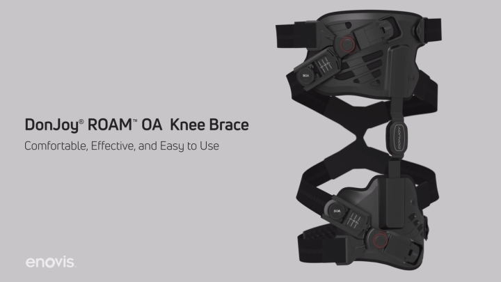 The DonJoy ROAM OA Knee Brace is a lightweight, low-profile unloader knee brace engineered to help patients with unicompartmental knee osteoarthritis by reducing compressive forces on the affected compartment. It features an intuitive strap and hinge system that improves comfort and mobility while offloading painful joint areas. The design allows for easier daily wear, helping patients stay active with less discomfort and improved knee stability. enovis.com
